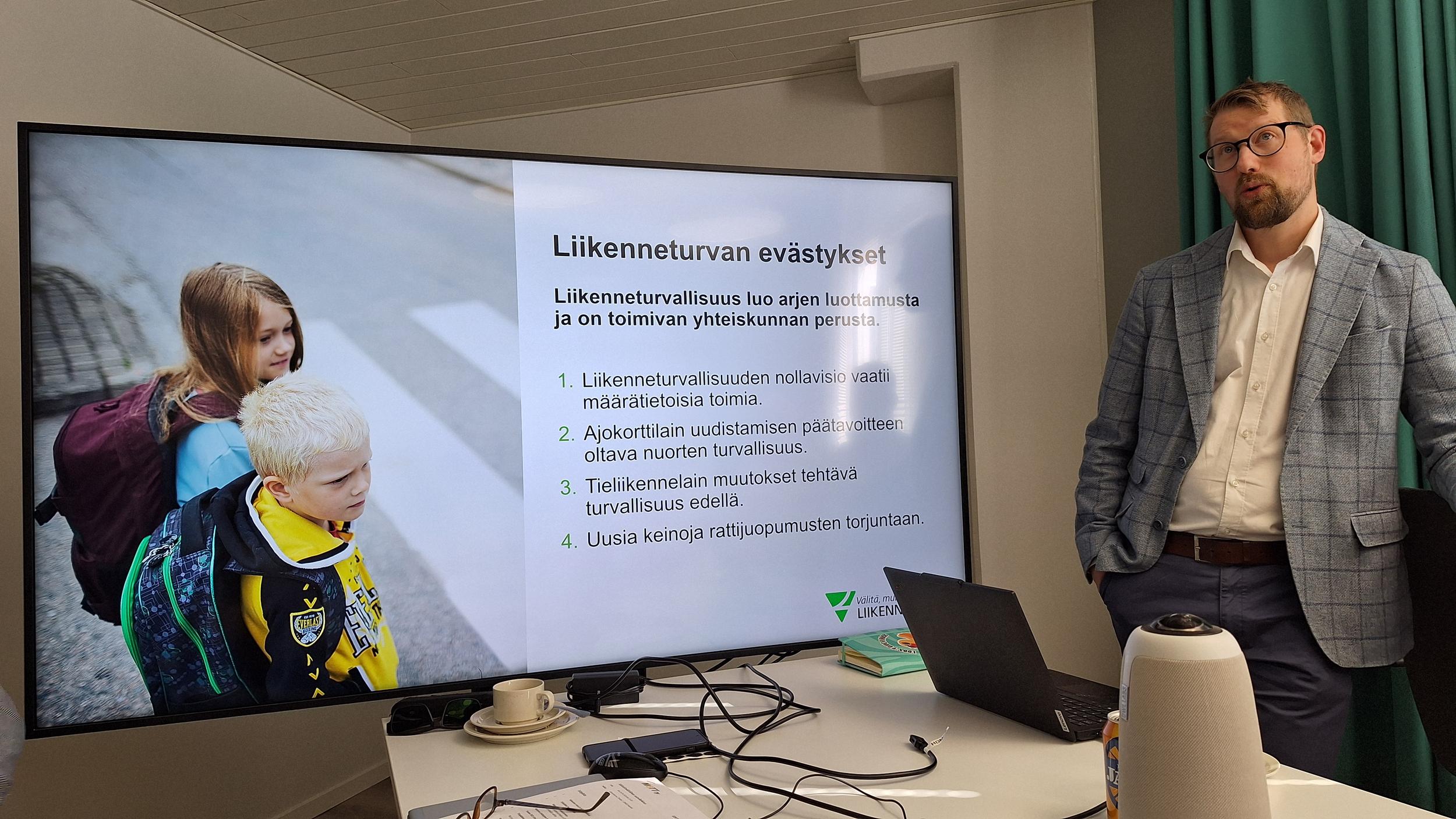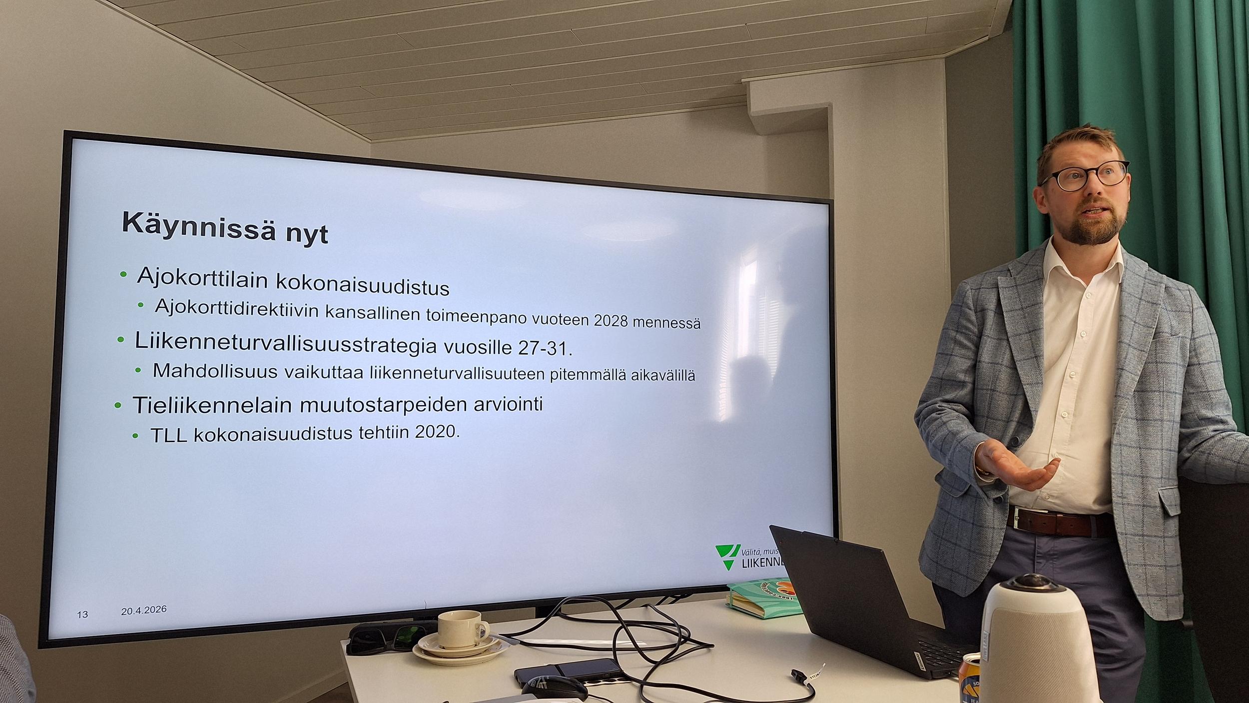 Pasi Anteroinen kävi läpi myös tämänhetkisen hallituksen liikenneturvallisuustoimia, kuten vahvat panostukset tiestön kuntoon, ikärajan saaminen sähköpotkulautailuun ja ajokorttilain korjauspaketti. Käynnissä on ajokorttilain kokonaisuudistus, liikenneturvallisuusstrategia vuosille 2027-2031 sekä tieliikennelain muutostarpeiden arviointi. Kiitokset isännille mielenkiintoisesta infopaketista!